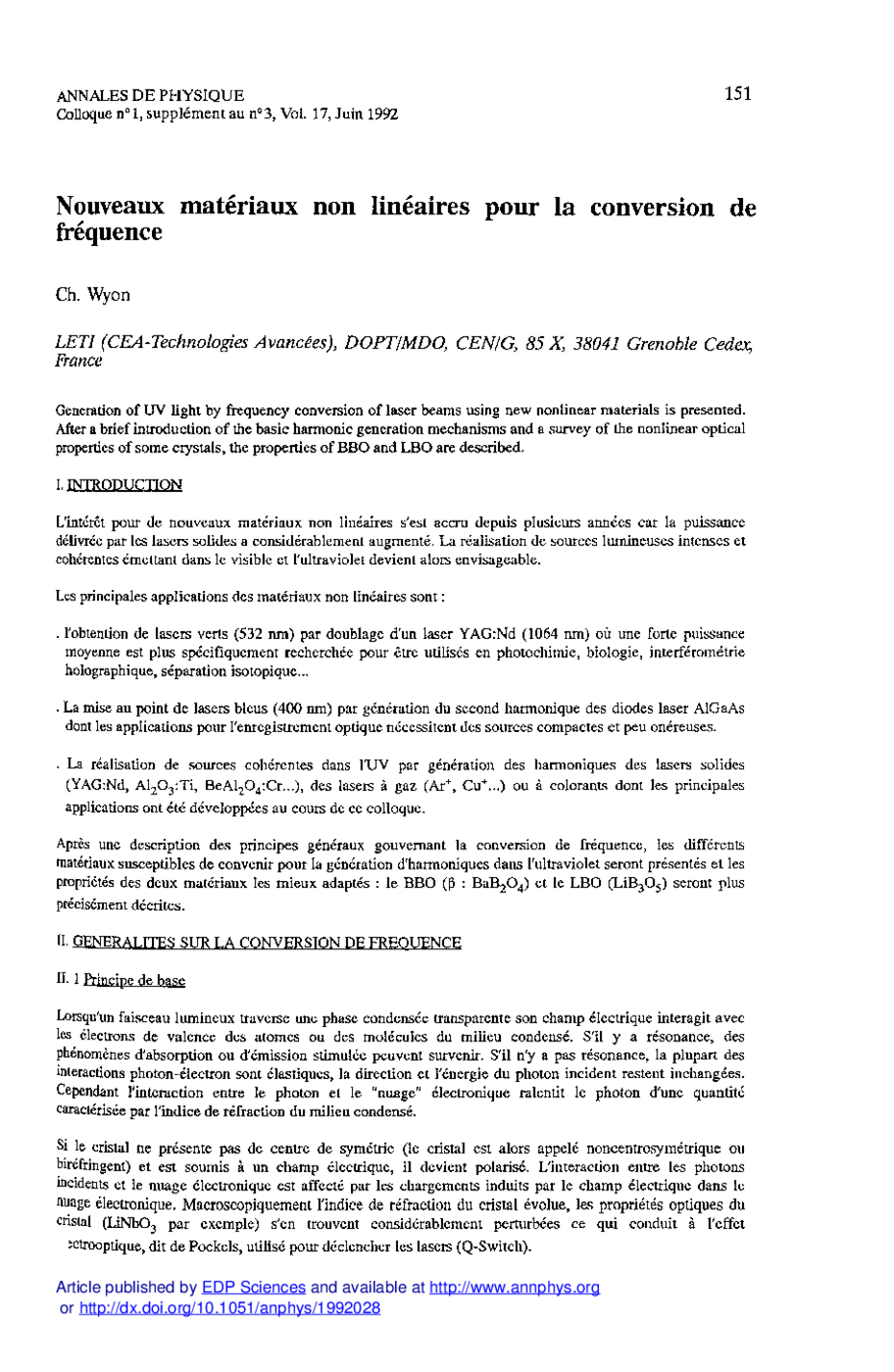 Ann. Phys. Fr., Vol. 17, C1 juin 1992, pp. 151-158